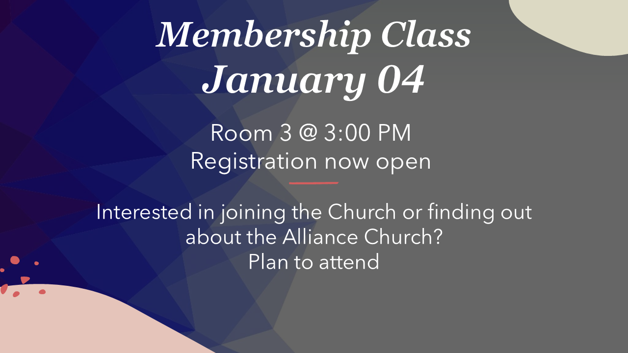 We are having a membership class and we are glad you are interested in becoming a member, or finding out more information about the Alliance church. In this class we will have a brief overview of the CMA.